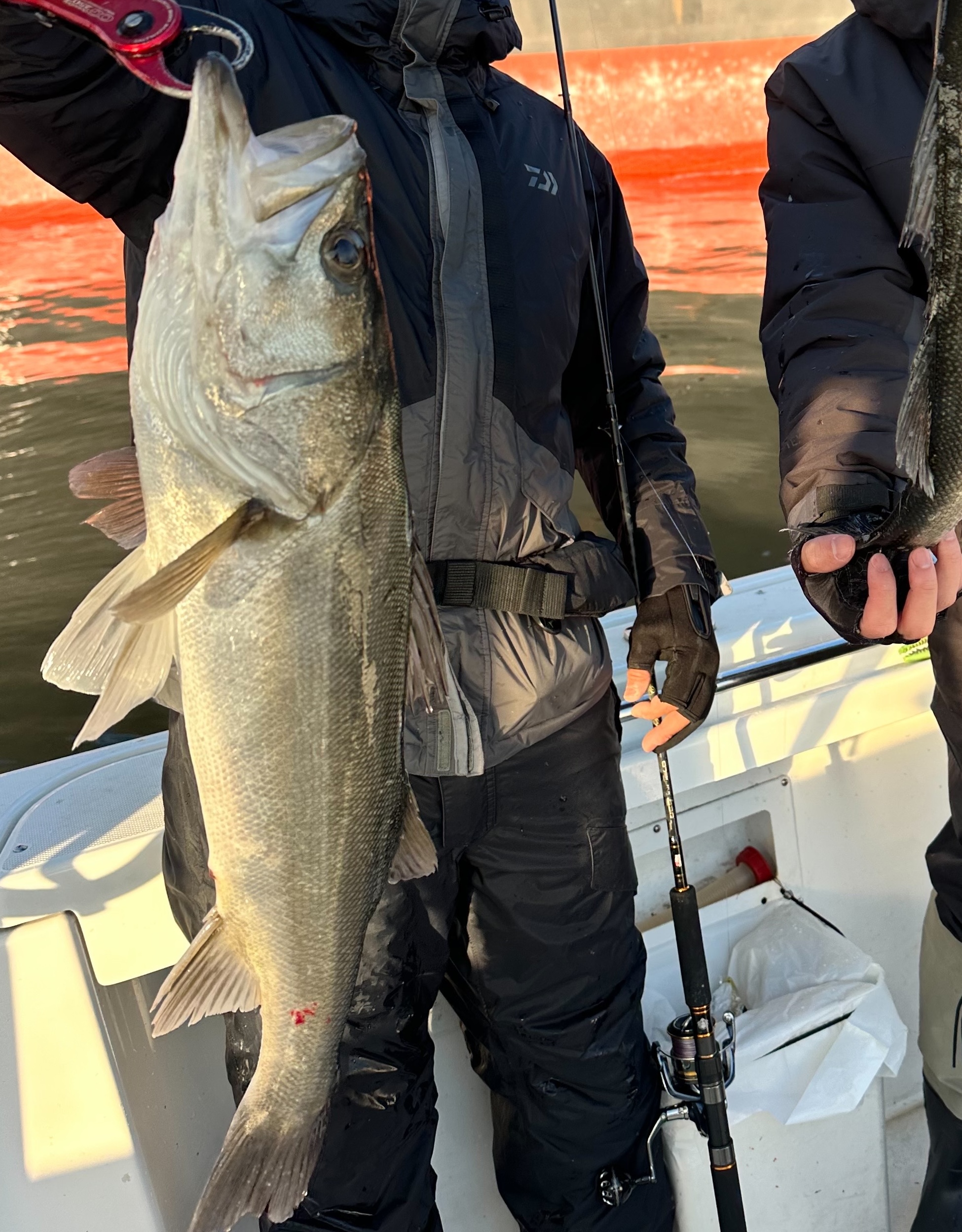 会社の同僚と行くも、同僚は半分以上の時間船酔いでダウン。でも最後になんとかシーバスを釣ってくれました。