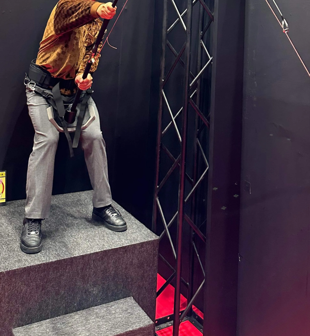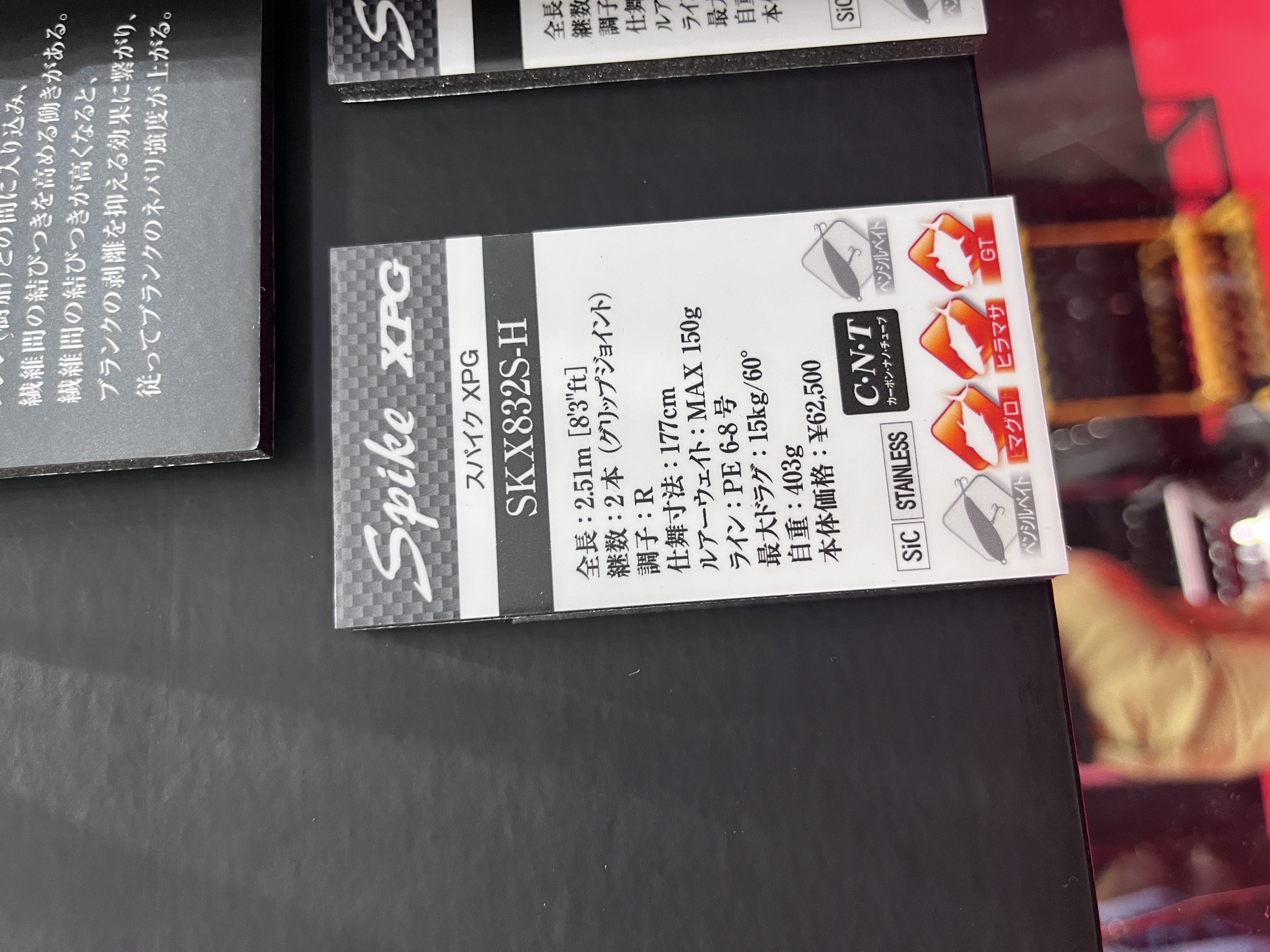 会場では、漁獲高制限で行けるか行けないか分からないマグロ釣りのために、大物キャスティング用のロッドとリールを物色し、天龍のロッドコーナーにてギンバルをつけて曲げ体験させていただきました。