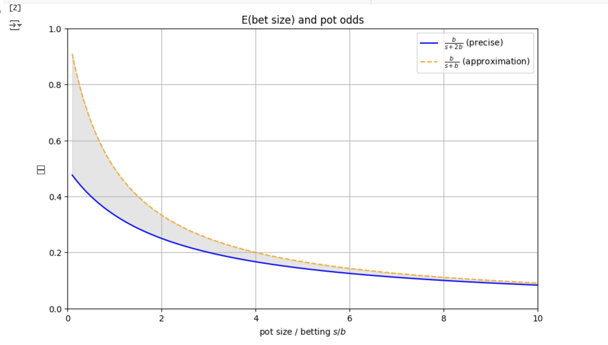 この差異は、特にベット額 b がポットサイズ s に対して大きい場合に顕著になります。具体的には、ベット額がポットサイズに近い、またはそれを超える場合、ポットオッズによる判断が不正確となり、期待値の条件と乖離が生じます。