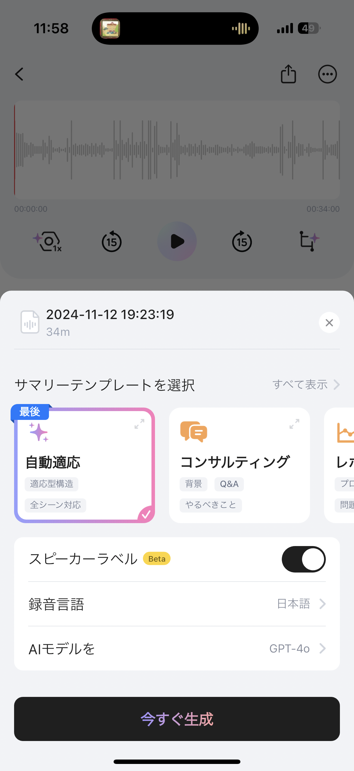 余談だが、最近僕が使っているPraud Note AIというデバイスでは、録音した音声を文字起こしして要約してくれ、要約にあたってのテンプレートをこちらから指定することができる。
