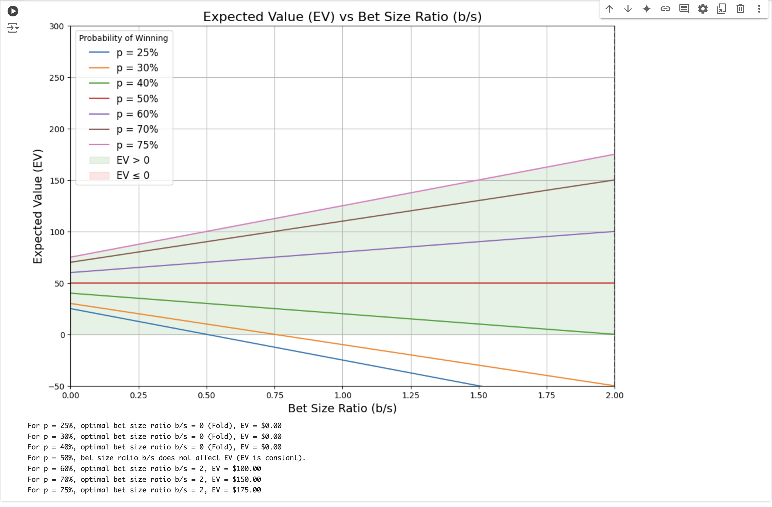 ベットサイズ b とポットサイズ s の比率 に対する期待値の変化を視覚化します。